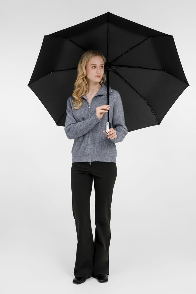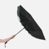 Зонт оснащен механизмом с пружиной и спицами из стекловолокна. Благодаря этому когда при экстремальных порывах ветра купол выгибается, механизм пружинит, не давая спицам погнуться или сломаться.