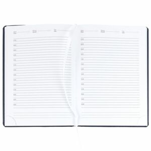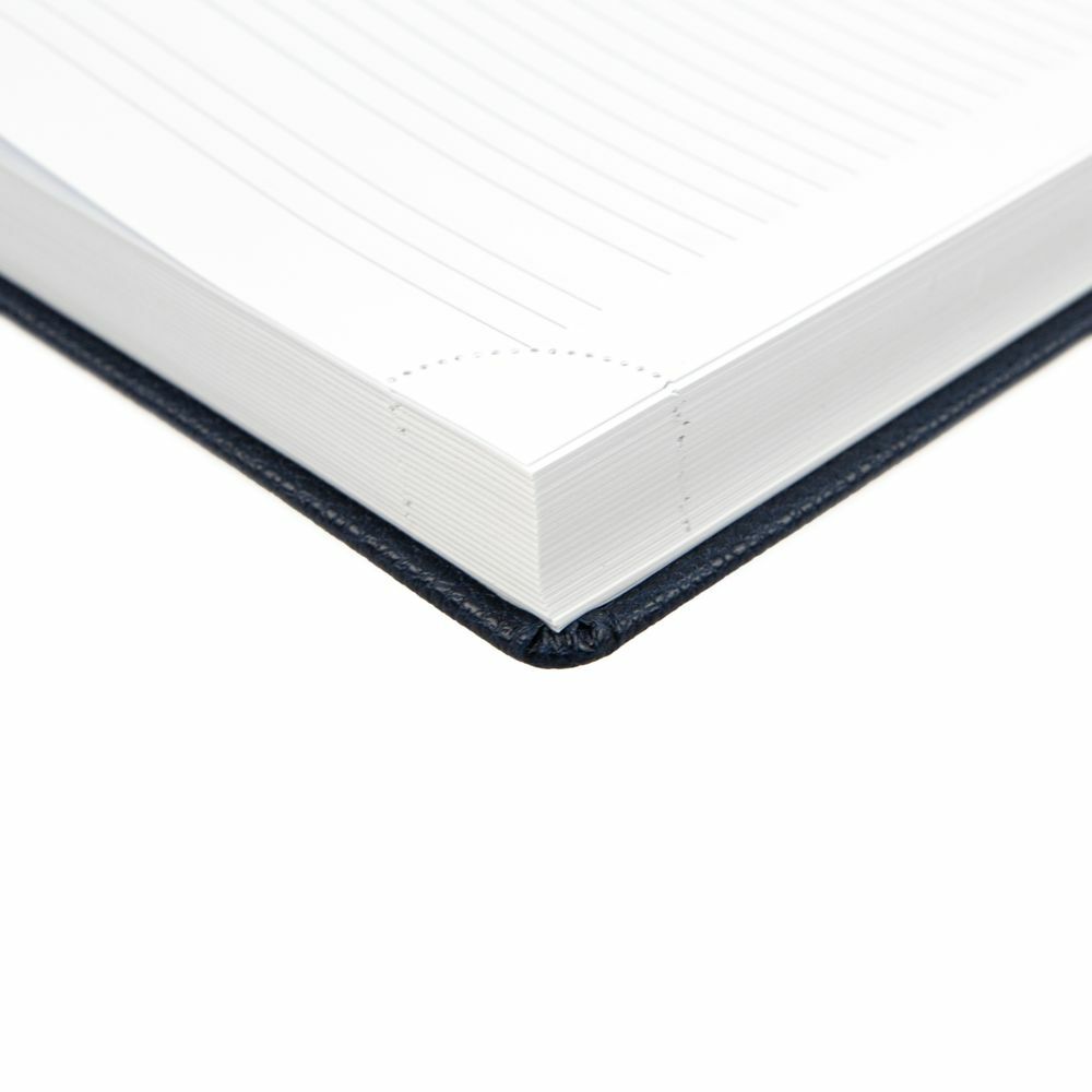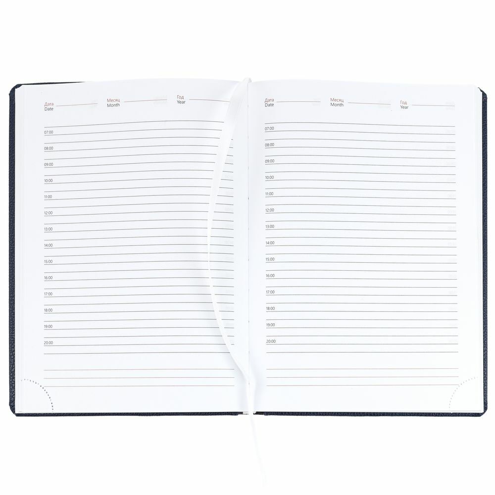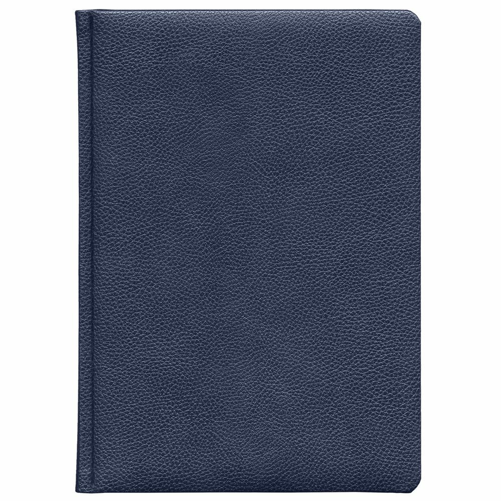 Ежедневник в твердой обложке c поролоном, выполнен из материала La Fite, темно-синий ХХ, дополнен ляссе белого цвета.