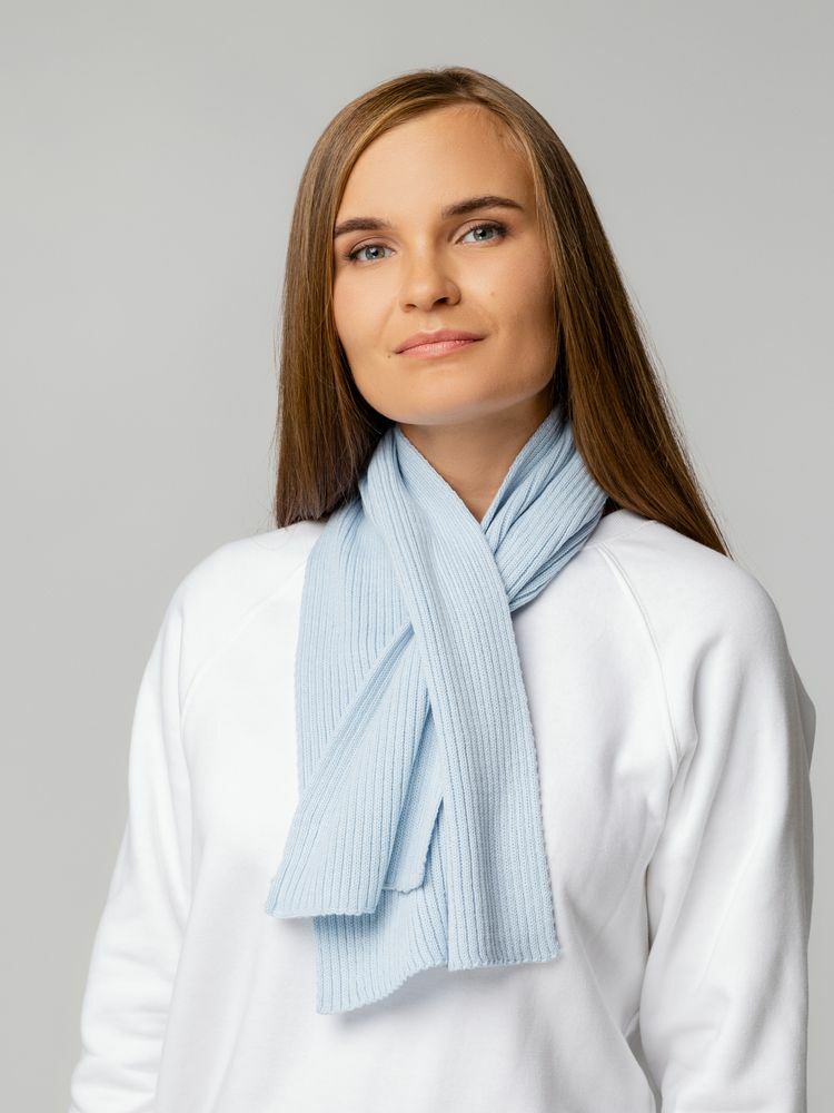 Однослойный шарф фактурной вязки с отверстием для быстрого и удобного завязывания.