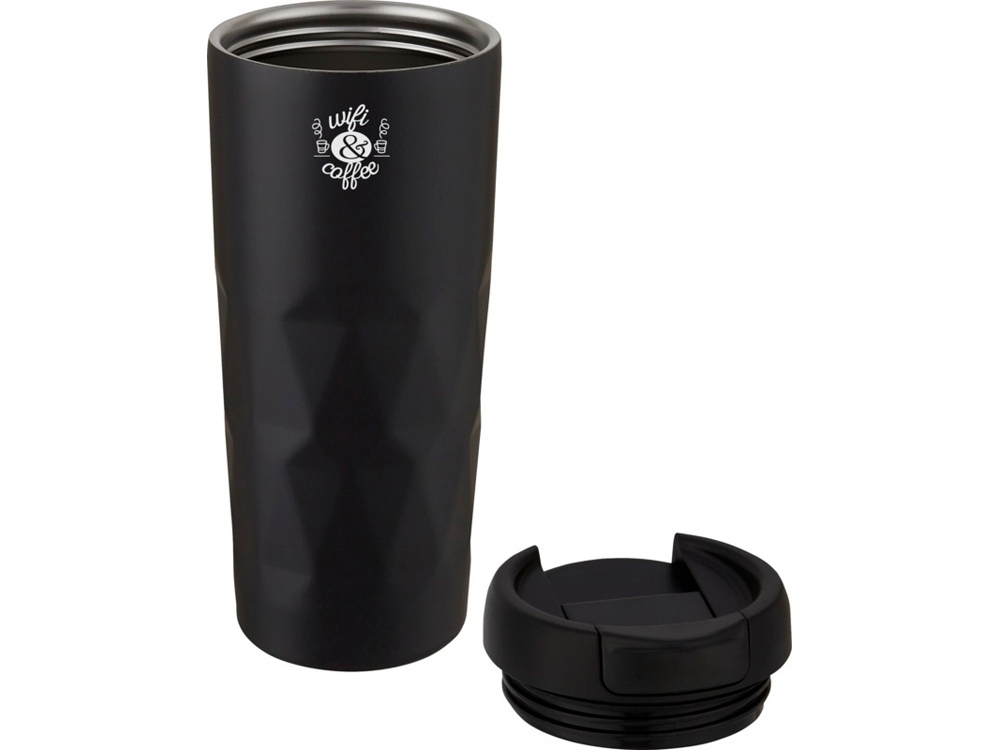 Медная кружка с двойными стенками, вакуумной изоляцией и навинчивающейся крышкой с защитой от проливания со сложным геометрическим дизайном. Благодаря изоляции и нержавеющей стали 18/8 напитки несколько часов остаются горячими или холодными. Без содержания BPA, протестировано и одобрено согласно немецкому законодательству о безопасности пищевых продуктов (LFGB), проверено на содержание фталатов согласно нормам REACH. Объем 450 мл. Рекомендуется мыть вручную. В подарочной коробке из переработанного картона.