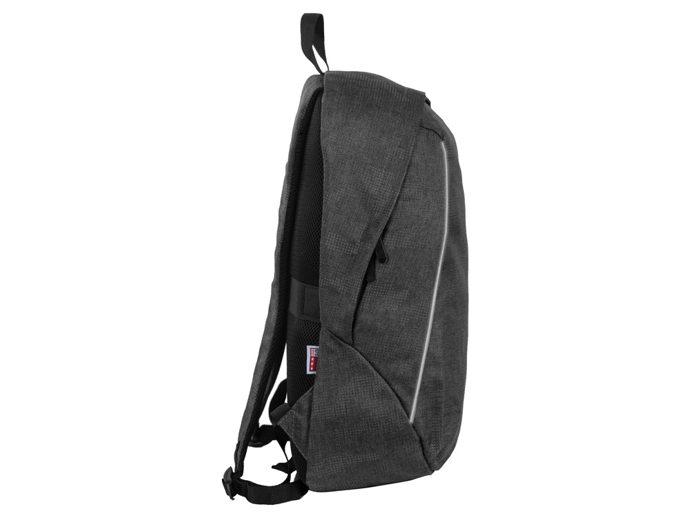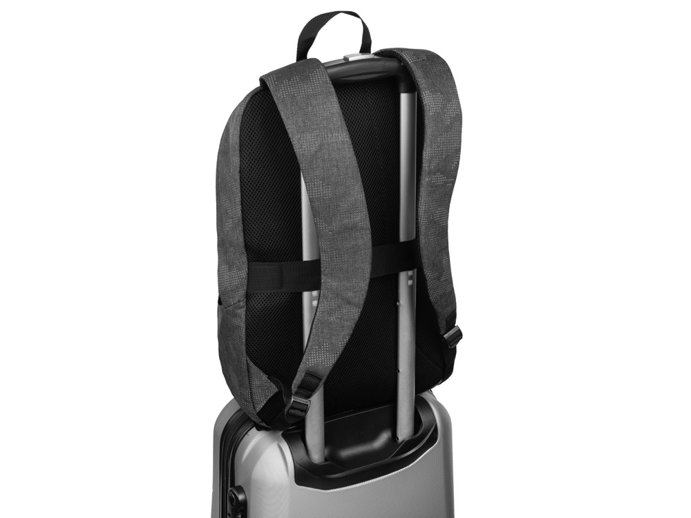 Материал, из которого сделан этот рюкзак, имеет светоотражающее камуфляжное нанесение. Спереди расположены 2 светоотражающие полосы. Все это обеспечивает дополнительную безопасность в темное время суток. - 2 уплотненных внутренних кармана для ноутбука и планшета с креплением на эластичных ремнях - органайзер - карман внутри для мелочей - дышащая сетчатая спинка - ремень для крепления на чемодан - регулируемые по длине лямки
