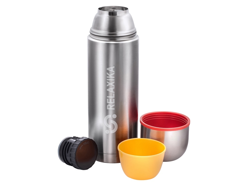 Классический термос Relaxika с двумя чашками и высокими показателями удержания температуры напитка для походов, путешествий, спорта и ежедневного использования. Прочные двойные стенки из высококачественной нержавеющей стали 18/8 с вакуумной изоляцией гарантируют, что ваш напиток останется холодным в течение 38 часов и горячим до 32 часов. Этот материал не только прочен, но и гигиеничен, не выделяет никаких вредных для здоровья веществ. Ваши напитки сохраняет естественный вкус и не приобретут посторонний запах. Напиток остается холодным до 38 часов и горячим до 32 часов 2 чашки. Узкое горлышко позволяет удерживать температуру максимально долго. Крышку термоса можно использовать как чашку. BPA Free. В пластмассах, используемых для производства термосов, отсутствует Бисфенол А – BPA признанный в мире вредным для здоровья человека. Надежная закручивающаяся пробка с силиконовым кольцом защищает от протекания и помогает удерживать температура. Высококачественная нержавеющая сталь 18/8.