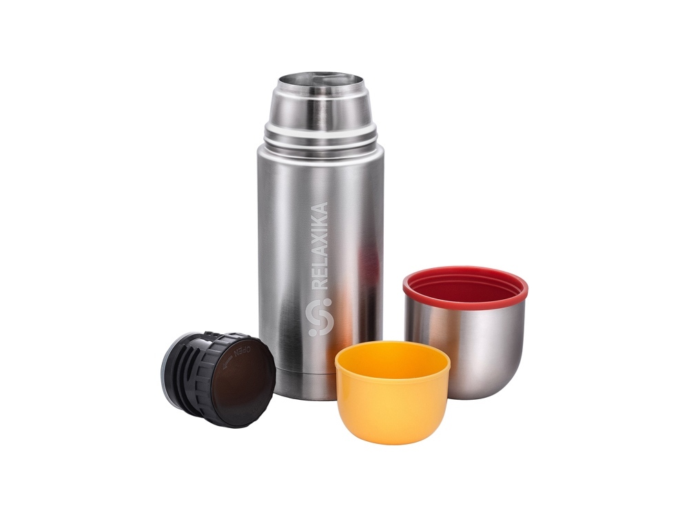 Классический термос Relaxika с двумя чашками и высокими показателями удержания температуры напитка для походов, путешествий, спорта и ежедневного использования. Прочные двойные стенки из высококачественной нержавеющей стали 18/8 с вакуумной изоляцией гарантируют, что ваш напиток останется холодным в течение 34 часов и горячим до 28 часов. Этот материал не только прочен, но и гигиеничен, не выделяет никаких вредных для здоровья веществ. Ваши напитки сохраняет естественный вкус и не приобретут посторонний запах. Напиток остается холодным до 34 часов и горячим до 28 часов. В комплекте идут 2 чашки. Узкое горлышко позволяет удерживать температуру максимально долго. Крышку термоса можно использовать как чашку. BPA Free. В пластмассах, используемых для производства термосов, отсутствует Бисфенол А – BPA признанный в мире вредным для здоровья человека. Надежная закручивающаяся пробка с силиконовым кольцом защищает от протекания и помогает удерживать температура. Высококачественная нержавеющая сталь 18/8.