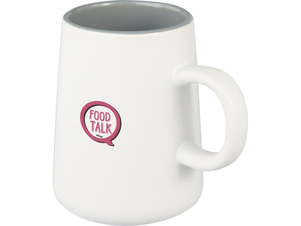 Керамическая кружка Joe с удобной круглой ручкой матовая снаружи и глянцевая внутри. Объем 450 мл. Можно мыть в посудомоечной машине независимо от методов нанесения печати. В подарочной коробке из переработанного картона.
