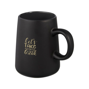 Керамическая кружка Joe с удобной круглой ручкой матовая снаружи и глянцевая внутри. Объем 450 мл. Можно мыть в посудомоечной машине независимо от методов нанесения печати. В подарочной коробке из переработанного картона.