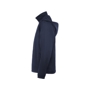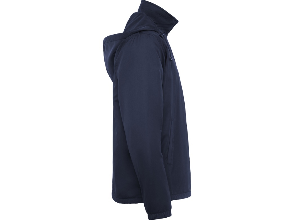 Легкая водонепроницаемая куртка. · Высокий воротник и складывающимся капюшоном с регуляторами. · Подкладка из микрофлиса. · Центральная застежка·молния и защита для подбородка. · Эластичные манжеты. · Два боковых кармана на застежке·молнии. · Внутренний левый нагрудный карман.
