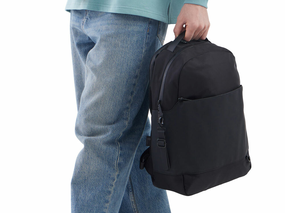 Рюкзак с двумя отделениями: для ноутбука 15.6'' и удобным органайзером с тремя карманами на молнии. - непромокаемая ткань и молнии - не страшен дождь - спереди большой вместительный карман на молнии - сетчатая спинка - карабин - лямки регулируются по длине - ремень для крепления на ручку чемодана - нетканый мешок для хранения в комплекте