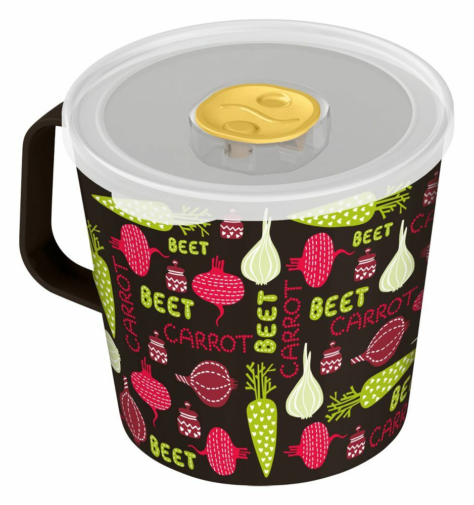 Вместительный контейнер в форме кружки подойдет для хранения продуктов и блюд. Благодаря легкому небьющемуся материалу и хваткой ручке им особенно удобно пользоваться в дороге.