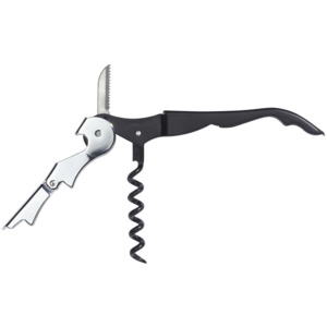 Штопор с буравчиком, открывалкой для бутылок и ножом для срезания фольги. Нержавеющая сталь.