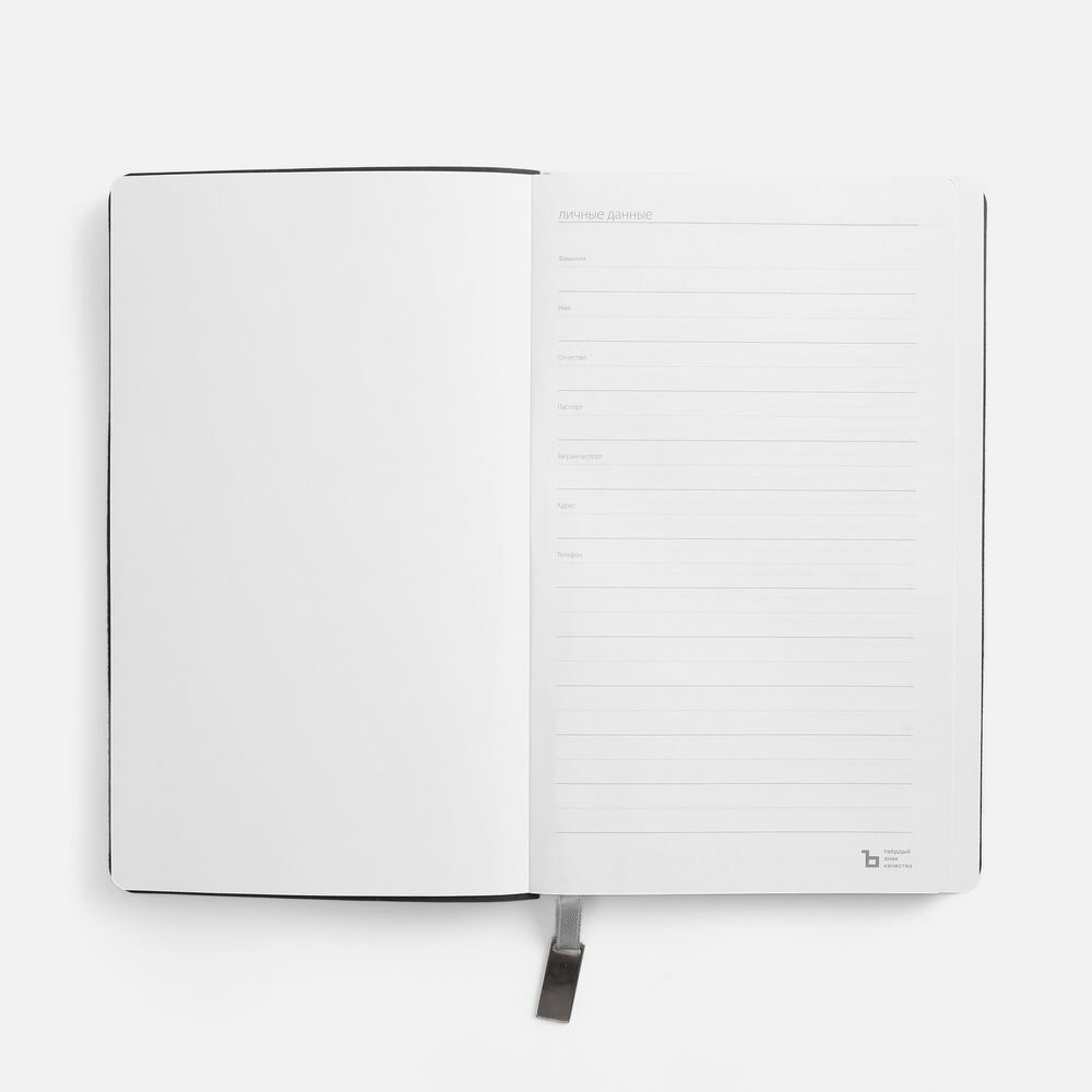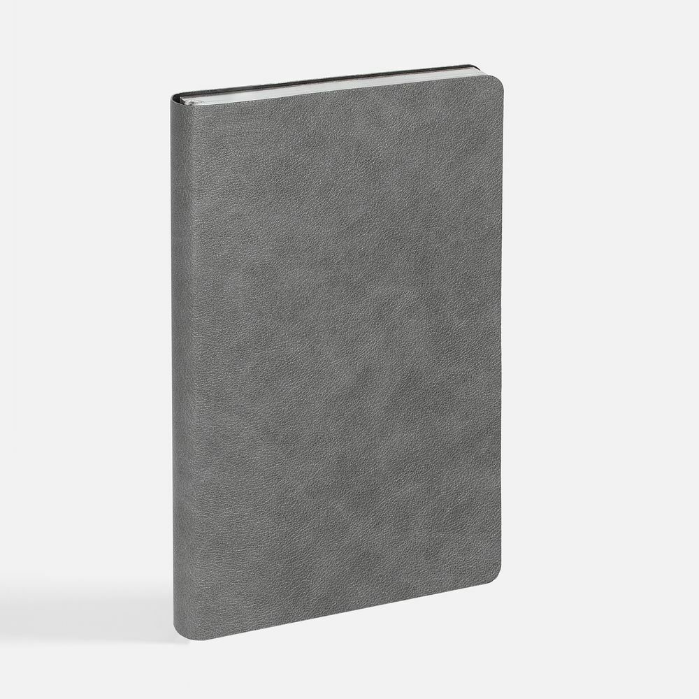 Ежедневник с гибкой обложкой, выполнен из материала Petrus, серый СС, дополнен серым ляссе с металлическим шильдиком.