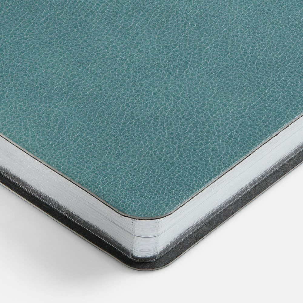 Ежедневник с гибкой обложкой, выполнен из материала Petrus, голубой JJ, дополнен серым ляссе с металлическим шильдиком.