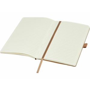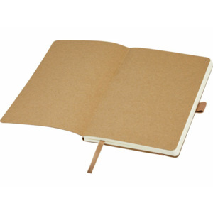 Блокнот из переработанной кожи с эластичным ремешком, петлей для ручки, закладкой, карманом из крафт-бумаги и 80 линованными листами кремового цвета из бумаги, переработанной по стандарту (70 г/м²). Обложка из переработанной кожи является стильным и износостойким верхним слоем, защищающим страницы внутри. Одним из преимуществ использования блокнота из переработанной кожи является комбинация стиля и экологичности. Уникальная текстура и внешний вид переработанной кожи придают каждому блокноту отличительный характер и индивидуальность.