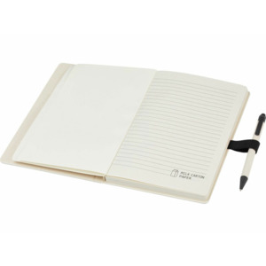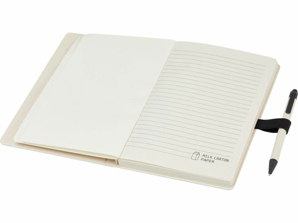 Блокнот A5 Dairy Dream с шариковой ручкой. Блокнот имеет 80 линованных листов (80 г/м²) из переработанных коробок из-под молока (до 70%), цветную спираль для бумаги и петлю для ручки. В петле находится шариковая ручка с кнопочным механизмом, цвет которой соответствует цвету блокнота. Корпус ручки также изготовлен из переработанных коробок из-под молока, а кнопка, зажим и наконечник изготовлены из цветного PLA-пластика. Внутри ручки имеется черный стержень. Картонные коробки из-под молока собираются, сортируются, перерабатываются и превращаются в бумагу, таким образом действительно превращая мусор во что-то полезное.