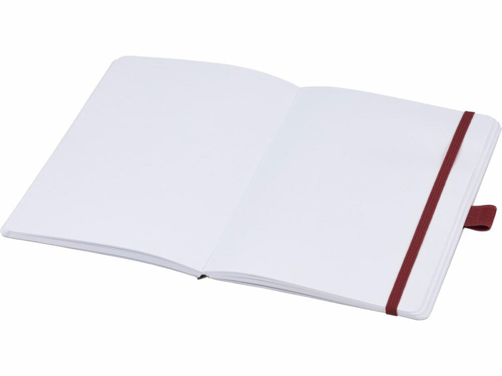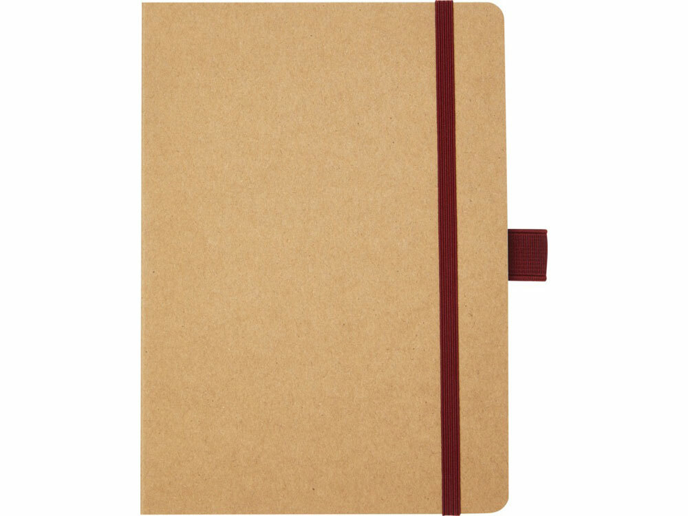 Блокнот формата из линованной переработанной бумаги (70 г/м²) с закругленными углами, цветной резинкой и петлей для ручки, соответствующей 107384 цветам ручки.