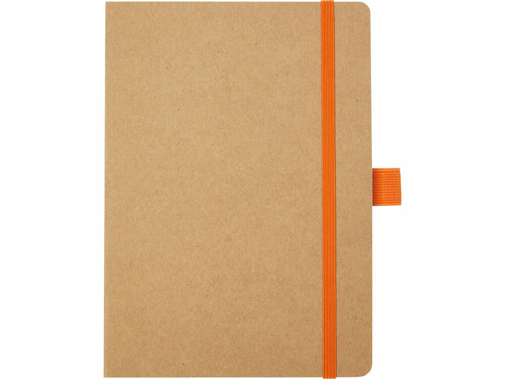 Блокнот формата из линованной переработанной бумаги (70 г/м²) с закругленными углами, цветной резинкой и петлей для ручки, соответствующей 107384 цветам ручки.