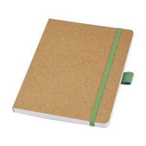 Блокнот формата из линованной переработанной бумаги (70 г/м²) с закругленными углами, цветной резинкой и петлей для ручки, соответствующей 107384 цветам ручки.