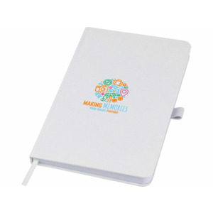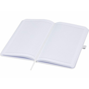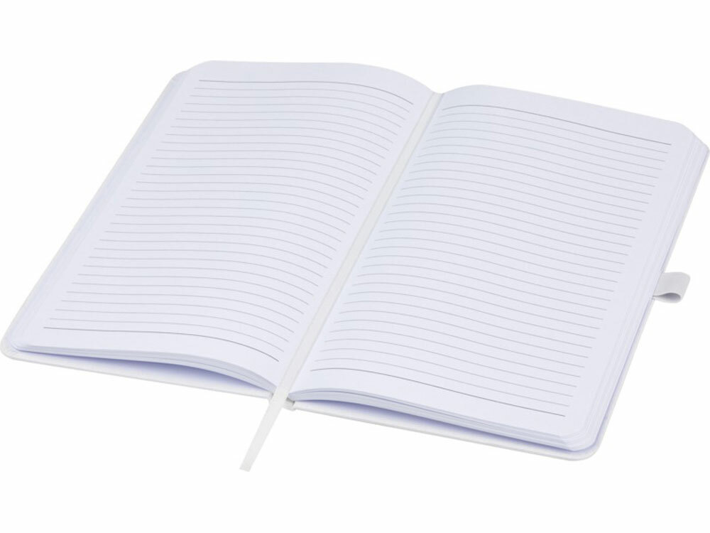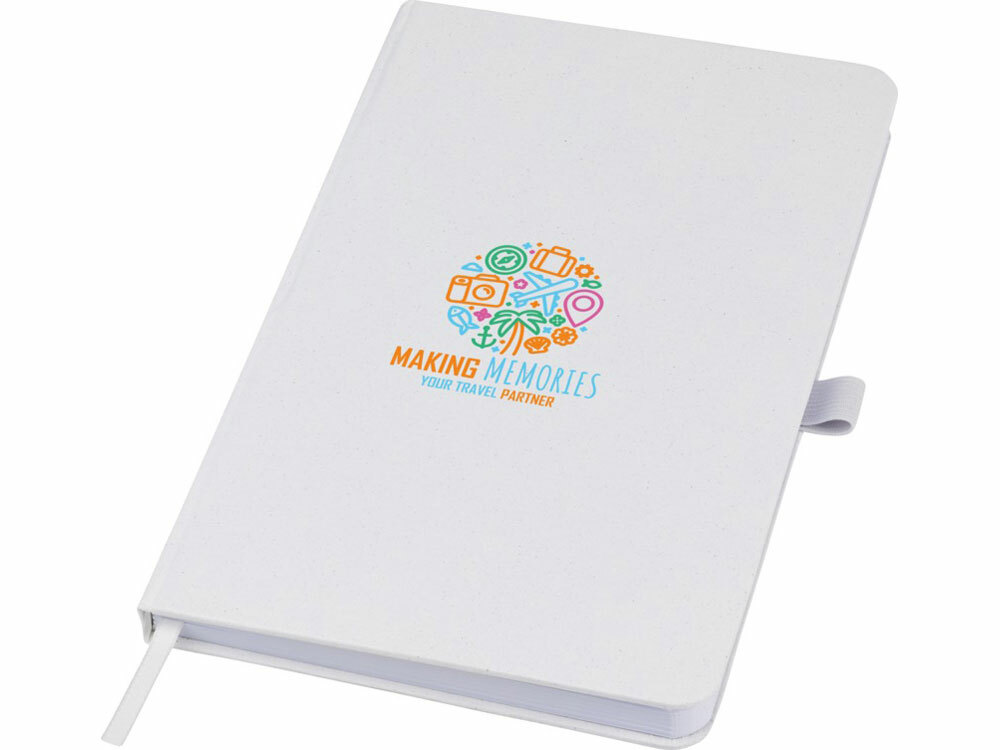 Легкий блокнот в твердой обложке для повседневных заметок с обложкой из материалов из ответственных источников. Коричневая обложка содержит остатки кофе, зеленая — остатки оливок, а белая — кукурузы. Имеет 80 листов (70 г/м²) из переработанной белой линованной бумаги.