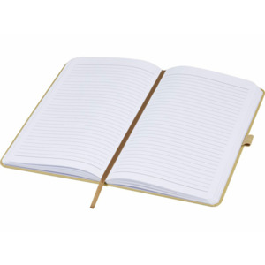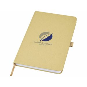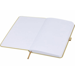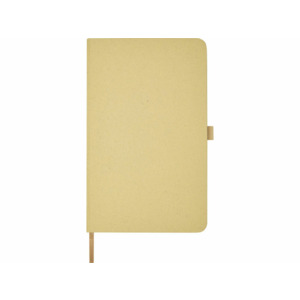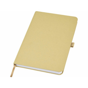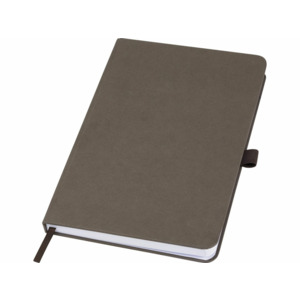 Легкий блокнот в твердой обложке для повседневных заметок с обложкой из материалов из ответственных источников. Коричневая обложка содержит остатки кофе, зеленая — остатки оливок, а белая — кукурузы. Имеет 80 листов (70 г/м²) из переработанной белой линованной бумаги.