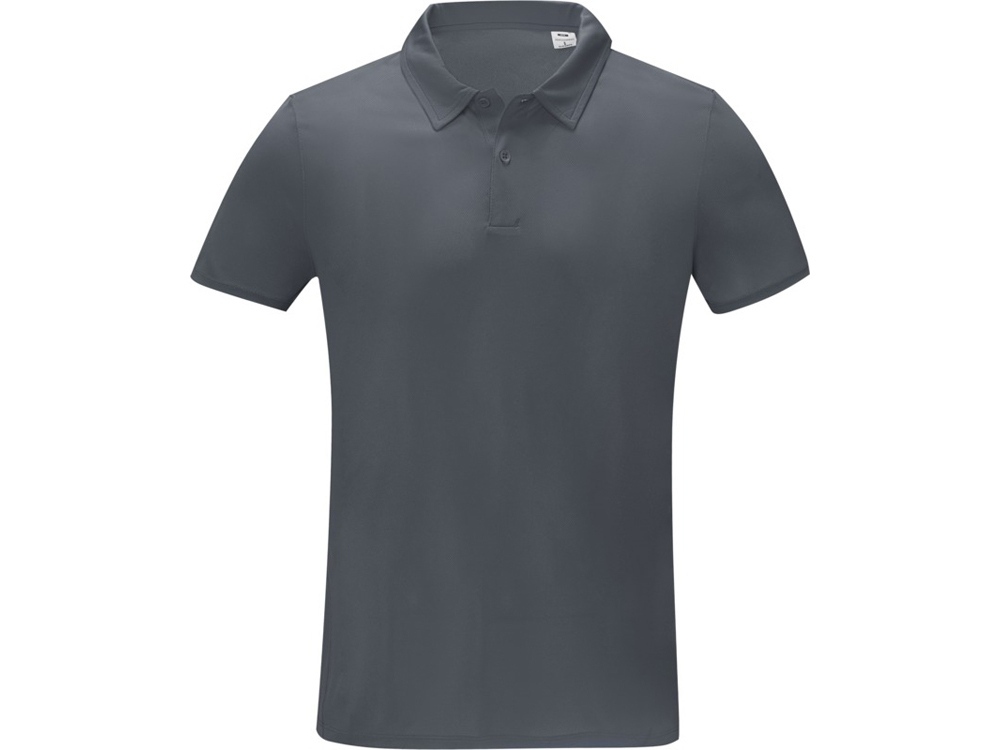 Мужская стильная футболка поло с короткими рукавами Deimos. Возможность нанесения на внутреннюю часть фирменной символики. Планка с двумя пуговицами. Для большего комфорта основной ярлык можно оторвать или отрезать. Обработка воротника обтачкой из основной ткани. Передний боковой шов со строчкой «флатлок». Сетчатая ткань с покрытием cool fit 100% Полиэстер, 105 g/m2.