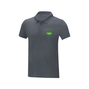 Мужская стильная футболка поло с короткими рукавами Deimos. Возможность нанесения на внутреннюю часть фирменной символики. Планка с двумя пуговицами. Для большего комфорта основной ярлык можно оторвать или отрезать. Обработка воротника обтачкой из основной ткани. Передний боковой шов со строчкой «флатлок». Сетчатая ткань с покрытием cool fit 100% Полиэстер, 105 g/m2.