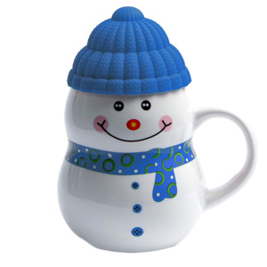 Оригинальная кружка в виде снеговика станет замечательным подарком на Новый год.Крышка в виде вязаной шапки с помпоном выполнена из силикона и не даст остыть вашему напитку в кружке.Кружка довольно емкая и имеет удобную ручку. А веселая улыбка снеговика создает позитивное настроение