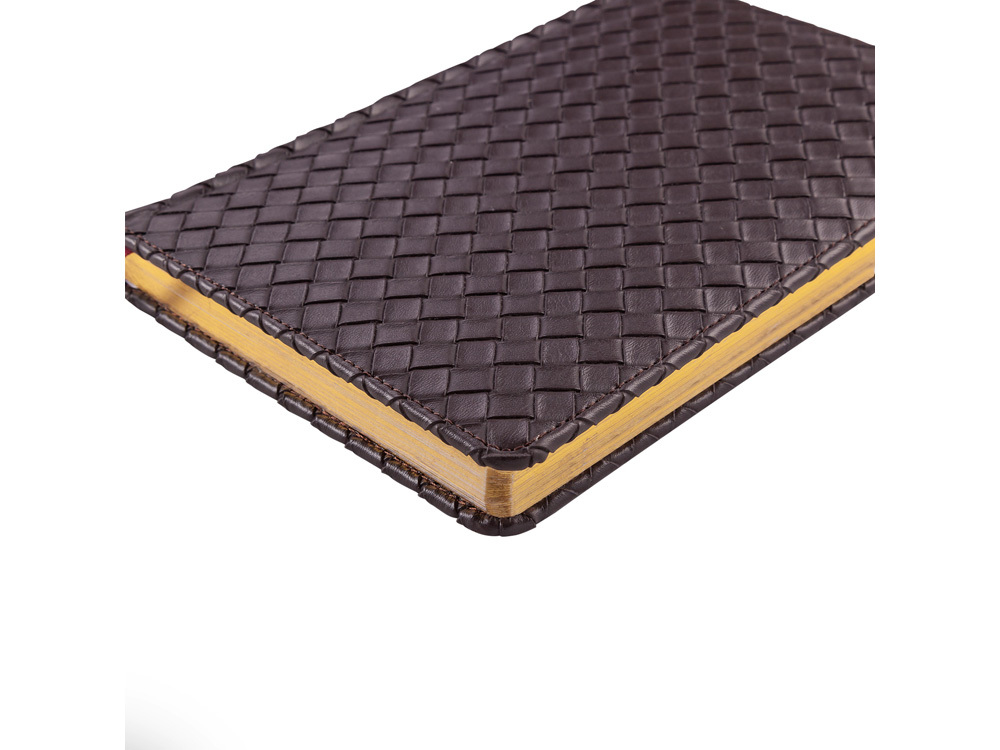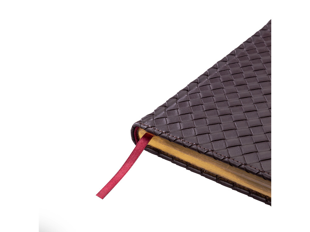 Традиции, строгость и итальянский стиль соединились в дизайне недатированного ежедневника «Magnum» от Bruno Visconti. При создании его обложки использовалась уникальная технология плетения «Intrecciato», заключающаяся в переплетении тонких кожаных лент и образуя таким образом ромбовый узор. Подобная техника придает прочности без потерь гибкости. Обложка, прошитая декоративной нитью в тон, золотой срез, скругленные углы блока, бордовое ляссе – традиционные характеристики ежедневников, подчеркивающие статус его владельца. Ежедневник формата A5 имеет блок, изготовленный из белой бумаги, плотностью 70 г/кв.м и содержит 272 страницы, 19 из которых – телефонная книга, 14-справочная информация.