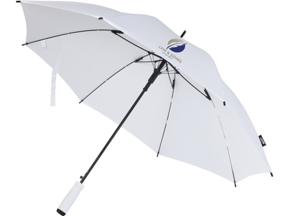 23-дюймовый зонт с куполом из эпонж полиэстера из переработанного ПЭТ-пластика. Автоматическое открытие. Имеет прочный металлический стержень, раму из стекловолокна и удобную ручку из EVA с кончиком черного цвета. Большая зона для печати на каждой панели.