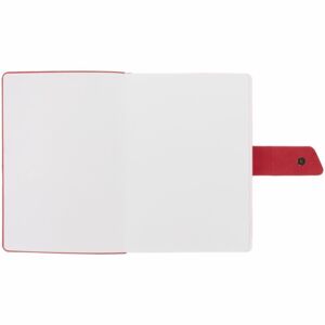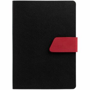 Ежедневник с гибкой обложкой, выполнен из материала La Fite, черный АА и Nubuck, красный РР, дополнен красным ляссе и хлястиком на кнопке.