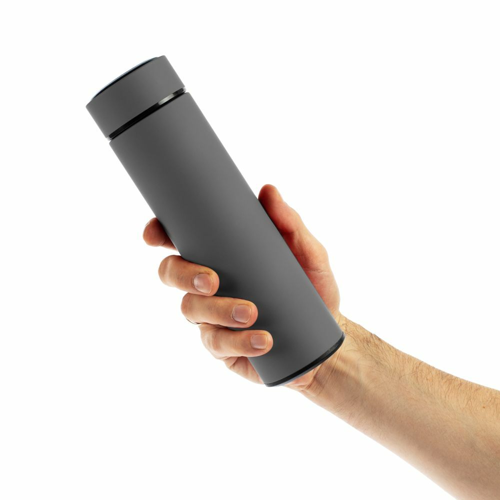 Компактный термос Percola пригодится и в городе, и на природе. Съемное ситечко поможет заварить чистую чашку чая или кофе, а цилиндрический корпус даст широкие возможности для маркетинговых сообщений.