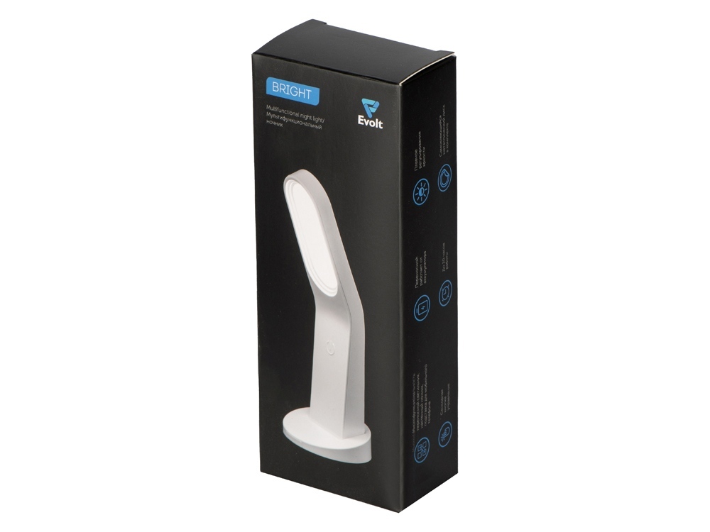 Мультифункциональный ночник «Bright» от Evolt можно использовать как настольную лампу на подставке, настенный светильник или даже в качестве держателя для мобильного телефона. Минималистичный дизайн, небольшой размер и отсутствие проводов – светильник работает от встроенного аккумулятора, позволяют «Bright» стать настоящим элементом декора в современных интерьерах. Несмотря на свою компактность этот светильник отлично справляется со своей основной задачей. Вы спокойно сможете читать при его свете. Если же яркий свет не нужен, то благодаря режиму плавного затемнения яркость можно отрегулировать. Светильник оснащён сильным магнитом для фиксации на металлической поверхности. Это значит, что вы его сможете легко закрепить, например, на холодильнике. А ещё в комплекте есть металлическая пластина, клеящаяся на стену, то есть сверлить ничего не придётся. - Питание от встроенного перезаряжаемого аккумулятора - Время работы в режиме самого яркого света около 4 часов, в режиме тусклого – около 20 часов - Оснащён сильным магнитом для крепления на металлических поверхностях - В комплекте есть подставка и самоклеящаяся металлическая пластина - Сенсорный переключатель, загорается при прикосновении Продукция Evolt совмещает в себе современные технологии и продуманный дизайн.