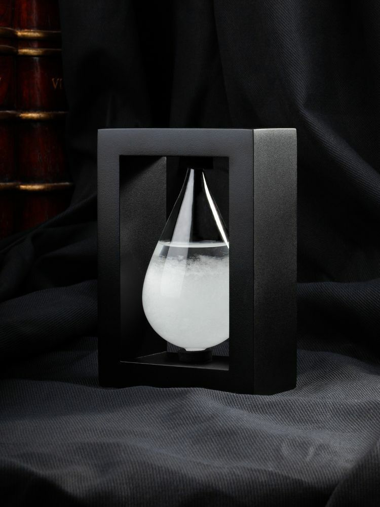 Стеклянная колба наполнена смесью дистиллированной воды, камфоры и этанола. В теории, когда на небо набегают облачка, внутри капсулы тоже происходят изменения. Технология дошла к нам сквозь многие века, и до сих пор нет четкой уверенности, работает ли она верно.