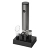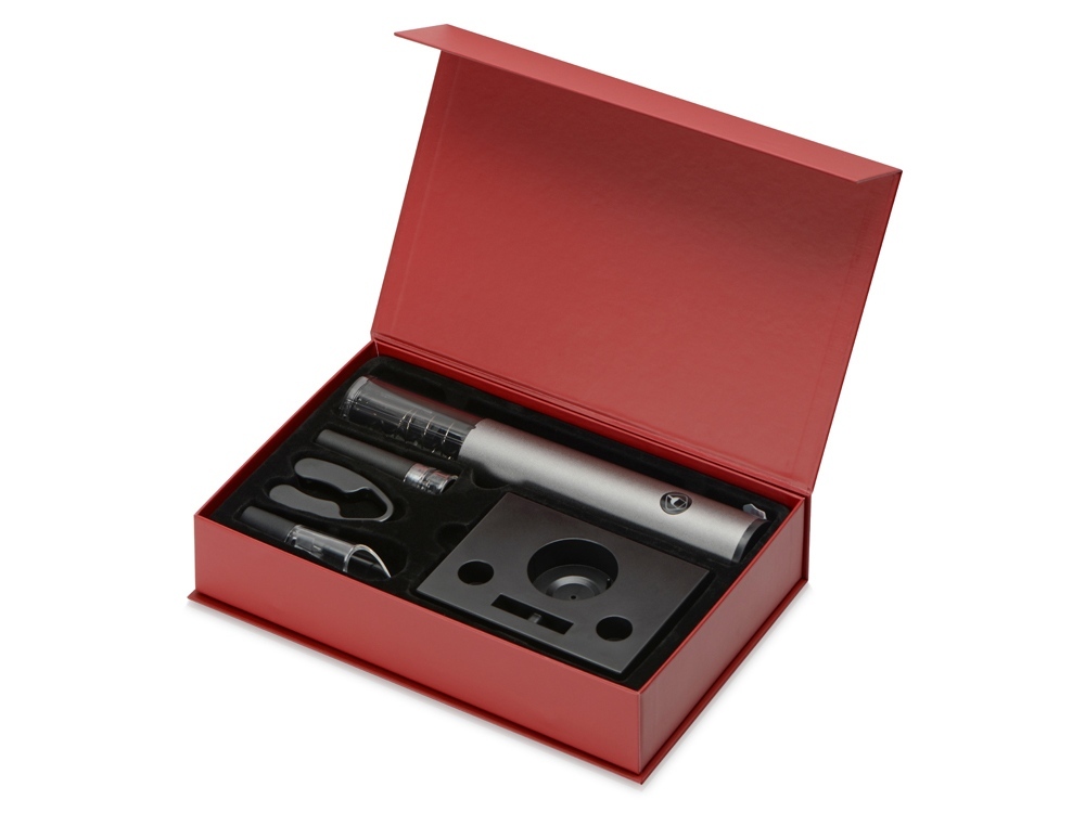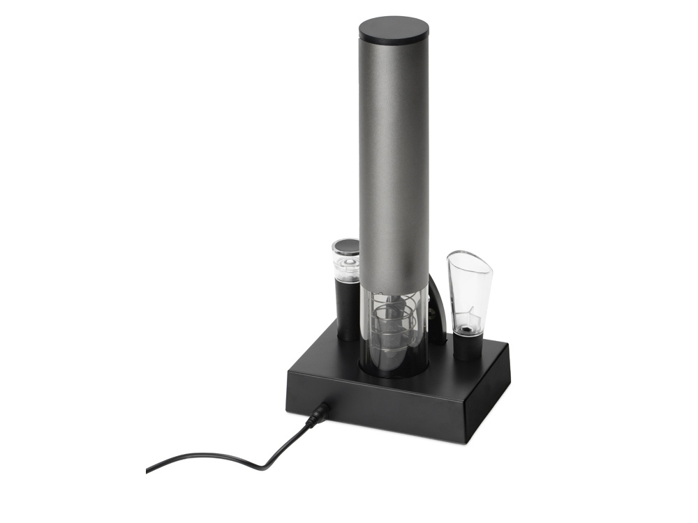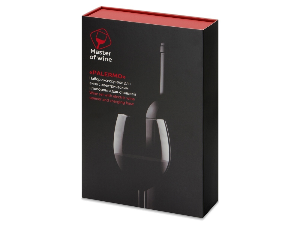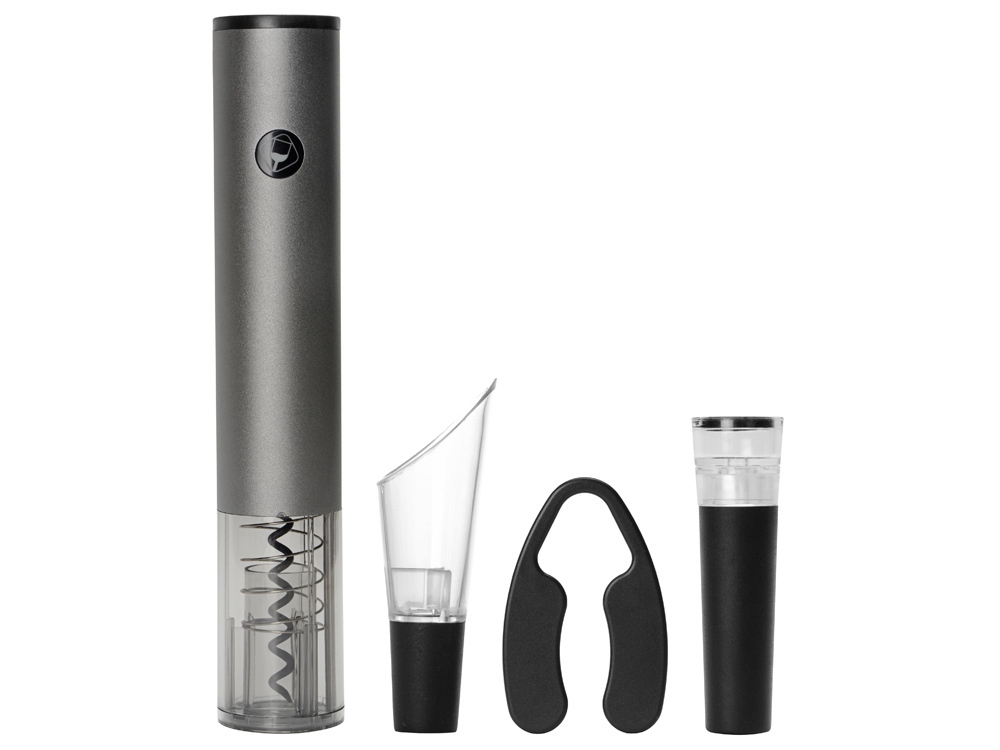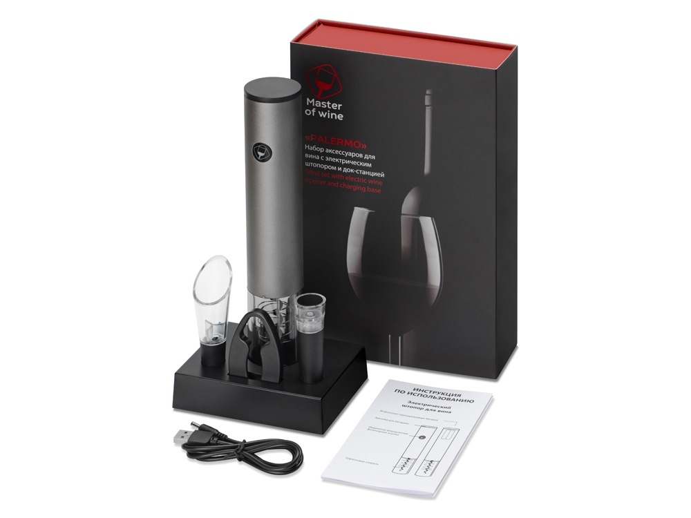 Набор «Palermo» от Master of Wine состоит из электрического штопора из алюминиевого сплава, пробки для вина, аэратора и ножа для фольги — с ним вы сможете откупорить вино и подготовить его к употреблению наилучшим образом. Штопор подзаряжается от док-станции, которая позволяет эффектно разместить винные аксессуары из набора, а также при использовании штопор подсвечивается, что прекрасно видно сквозь прозрачную нижнюю часть — превратите подготовку вина в настоящее зрелище! От вас не требуется никаких усилий: просто правильно разместите штопор поверх горлышка и слегка прикоснитесь к сенсорной кнопке, а если процесс не кажется вам очевидным — поможет инструкция, которая приложена к набору. О том, насколько штопор заряжен, расскажет цвет индикатора заряда: зеленый (полностью заряжен), синий (достаточно заряжен) или красный (требуется зарядка). Кстати, штопор можно использовать и с батарейками типа АА (4 штуки), но с ними запрещается устанавливать штопор на док-станцию. Аэратор-воронка плотно фиксируется на горлышке благодаря силиконовой вставке, проходя сквозь него напиток обогатится кислородом, что поможет раскрыть его вкус. Воронка же не даст капелькам пролиться мимо бокала. Вакуумная пробка решит вопрос недопитого остатка: сохраните вино на следующий день, несколькими движениями откачав воздух из бутылки. Нож для фольги надевается на запечатанную пробку сверху и проворачивается, срезая фольгу круглыми маленькими ножами. Набор упакован в коробку с бархатным ложементом. - качественные материалы - набор позволяет полностью подготовить вино к подаче - все принадлежности просты в использовании - сенсорная кнопка - штопор работает на аккумуляторе или батарейках - док-станция для подзарядки, а также для удобного размещения комплектующих