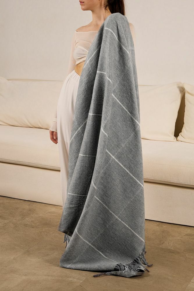 Серый цвет придает пледу элегантный и стильный вид — ненавязчиво оттенит любой интерьер.