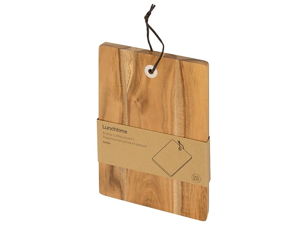 Разделочная доска "Lunchtime" идеально подойдет для нарезки овощей, мяса и других продуктов. Доска выполнена из высококачественной акации, главным достоинством которой является высокая стойкость к влаге. Помимо того, что предметы из данной древесины всегда выглядят очень эстетично и стильно, разделочная доска "Lunchtime" прослужит длительный период, стойко перенося влагу и механические нагрузки. Имеется ремешок для подвешивания, выполненный из натуральной кожи.