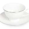 Изящная чайная пара с серебристым кантом от Eat&Bite создаст особенную атмосферу чаепития по-английски. Костяной фарфор очень лёгкий и тонкий и слегка просвечивается. Но несмотря на это, посуда из него достаточно прочная и прослужит вам долгие годы. Эта чайная пара прекрасно подойдёт не только для чая, но и для кофе. • Утончённый дизайн • Костяной фарфор • Подходит как для чая, так и для кофе Чайную пару рекомендуется мыть вручную с использованием мягких моющих средств и не использовать в микроволновке.