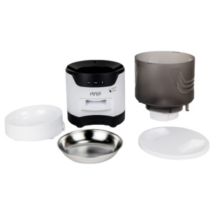 Умная автокормушка HIPER идеальный девайс, который оценят и питомцы, и хозяева. Устройство с автоподачей корма имеет контейнер на 3 литра сухого корма, этого объема хватит для кошки или маленькой собаки на 7-10 дней. Внутри контейнера имеется специальный фильтр, который защищает сухой корм от влаги. Также конструкция предусматривает встроенный вращающийся механизм, который обеспечивает равномерную подачу корма через широкое отверстие. Вы можете отрегулировать размер порции от 10 до 200 грамм. Расписание кормления можно настроить в бесплатном приложении HIPER IoT для всех смартфонов на Android и iOS, там же вы можете покормить питомца дистанционно в любой момент, где бы вы ни были. Чтобы питомец знал о кормлении, хозяин может записать своим голосом команду или звук, который будет сигнализировать четвероногому другу о том, что в миске появился корм. Чтобы питомец не остался без еды при внезапном отключении электроэнергии, кормушка имеет альтернативный источник питания через три батарейки типа D. Во время сбоев в сети кормушка автоматически перейдет на автономную энергию и не оставит питомца без еды.