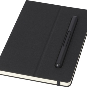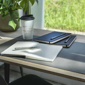 Набор из ручки и блокнота Skribo, сертифицированный RCS, частично изготовлен из переработанного полиэстера, бывшего в употреблении, что делает этот набор более экологичным выбором, поскольку помогает сократить использование первичного сырья. В комплект входит шариковая ручка с черными чернилами и 80 листов в линейку кремового цвета, выполненных из переработанной бумаги плотностью 80 г/м² из экологически чистых источников. Длина непрерывной линии ручки составляет 1000 метров. FSC certified paper. FSC Mix Credit P7 CU-COC-877277.
