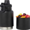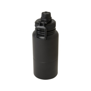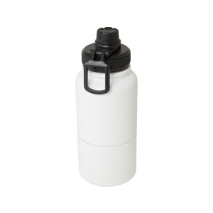 Многоразовая бутылка-термос из нержавеющей стали, сертифицированная RCS, со съемным контейнером для хранения. В верхней части бутылка имеет медный изолированный термос объемом 530 мл, который сохраняет напитки горячими или холодными в течение нескольких часов. Нижняя часть представляет собой контейнер с двойными стенками, вмещающий до 340 мл. Его можно использовать как чашку для любимых холодных напитков или для хранения закусок или других мелочей. Поставляется в подарочной коробке из переработанного картона. RCS certified recycled stainless steel, Recycled PP Plastic. Packaging: FSC Mix Credit P5.1 CU-COC-877277.