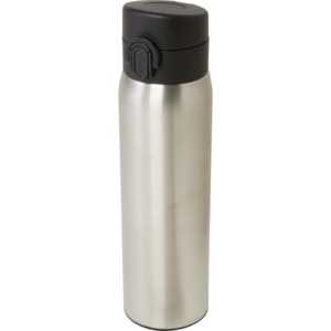 Стильная фляга-термос из переработанной нержавеющей стали, сертифицированная RCS, с простым механизмом открытия с помощью кнопки. Фляга герметична, а благодаря медной вакуумной изоляции напитки будут сохраняться горячими или холодными в течение нескольких часов. Объем составляет 450 мл. Поставляется в подарочной коробке из переработанного картона. Recycled stainless steel, Recycled PP Plastic. Packaging: FSC Mix Credit P5.1 CU-COC-877277.