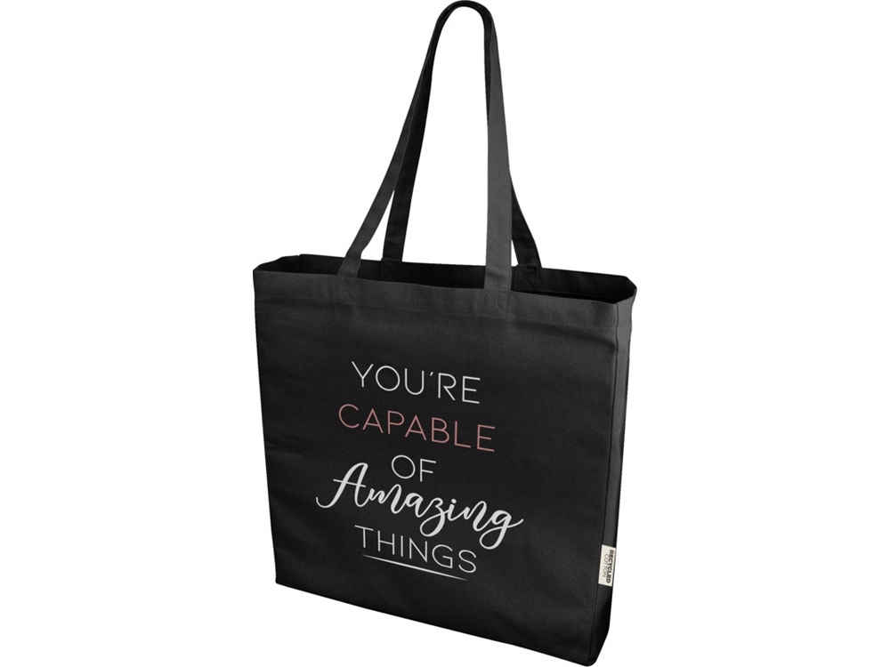 Эко-сумка Odessa, изготовленная из 100% переработанного хлопка, сертифицированного по стандарту GRS, создана для удобного ношения благодаря ручкам на плечо длиной 30 см и большому основному отделению с клинчиком. Независимо от того, хотите ли вы носить с собой тяжелые книги или продукты, эта сумка предназначена для удовлетворения любых потребностей. Методы печати, доступные для этой эко-сумки, также сертифицированы по стандарту GRS, что гарантирует прозрачность и сертификацию всей цепочки поставок. Хлопок плотностью 220 г/м² обеспечивает долговечность и надежность и позволяет переносить вес до 10 кг. Сделано в Индии. Recycled cotton, 220 g/m2.