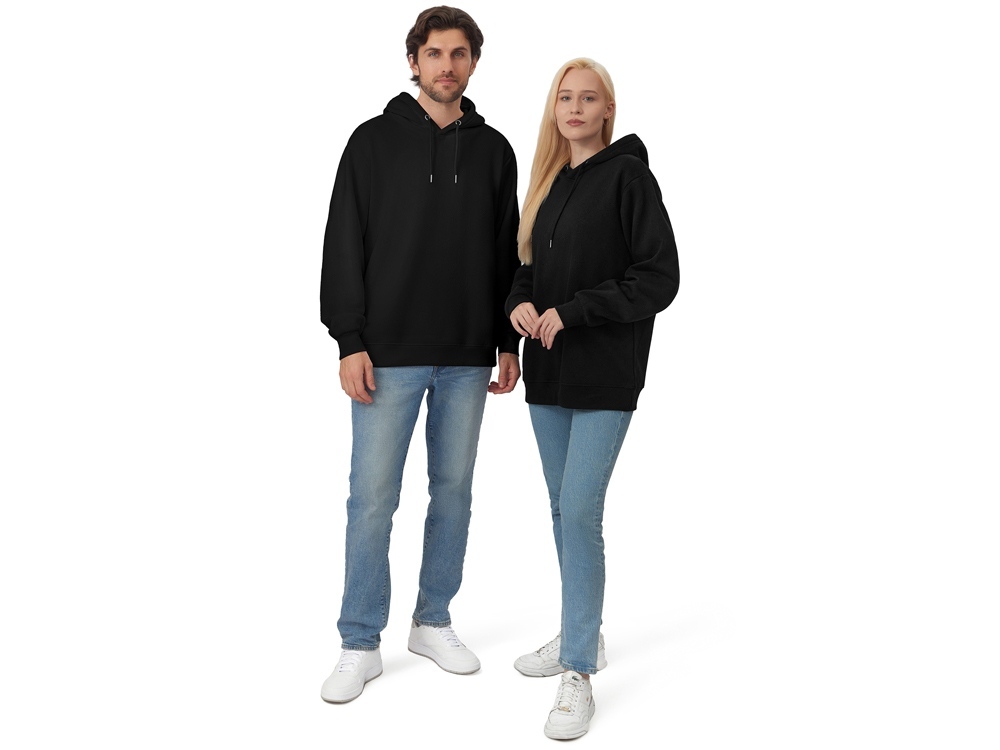 Толстовка с капюшоном из мягкого флиса из смеси хлопка и полиэстера. Модель комфортной и актуальной посадки оверсайз отлично подходит для обычной жизни и в качестве промо мерча. - оверсайз посадка - удобный капюшон на подкладке -мягкое и уютное полотно из смеси хлопка и полиэстеры - Низ и рукава обработаны манжетами из риба 2х2 и дополнительно отстрочены для укрепления - увеличенная зона для нанесения из-за отсутствия кармана