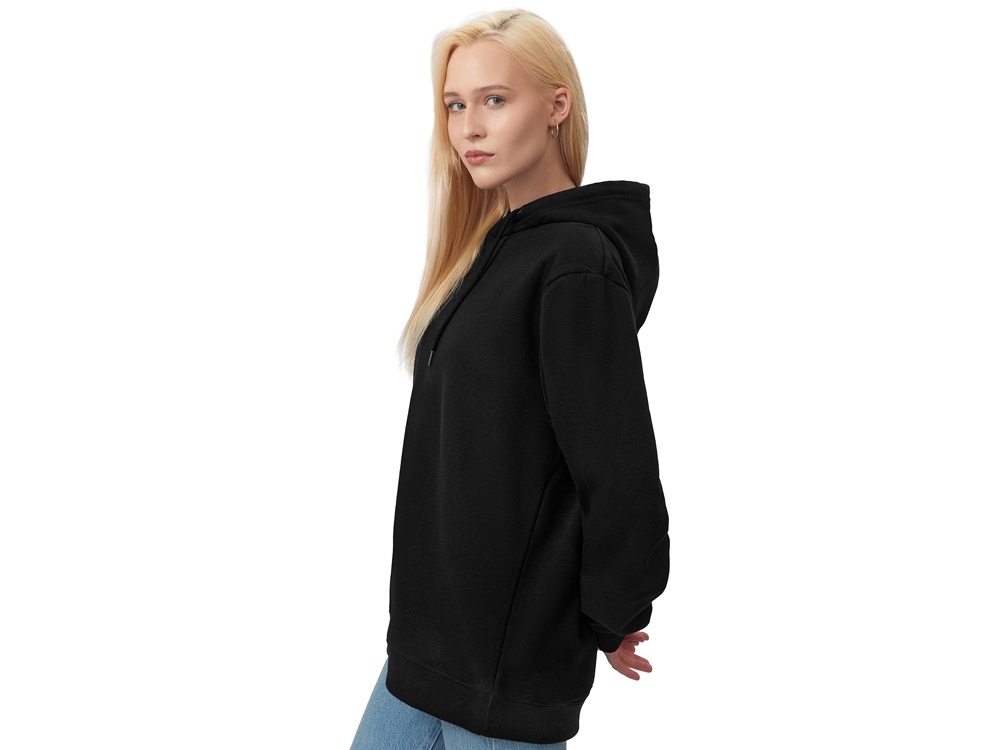 Толстовка с капюшоном из мягкого флиса из смеси хлопка и полиэстера. Модель комфортной и актуальной посадки оверсайз отлично подходит для обычной жизни и в качестве промо мерча. - оверсайз посадка - удобный капюшон на подкладке -мягкое и уютное полотно из смеси хлопка и полиэстеры - Низ и рукава обработаны манжетами из риба 2х2 и дополнительно отстрочены для укрепления - увеличенная зона для нанесения из-за отсутствия кармана