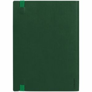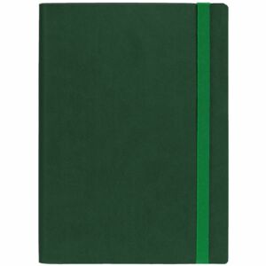 Ежедневник с гибкой обложкой выполнен из материала Latte, зеленый FF, и дополнен резинкой шириной 1 см, капталом и ляссе в цвет обложки.