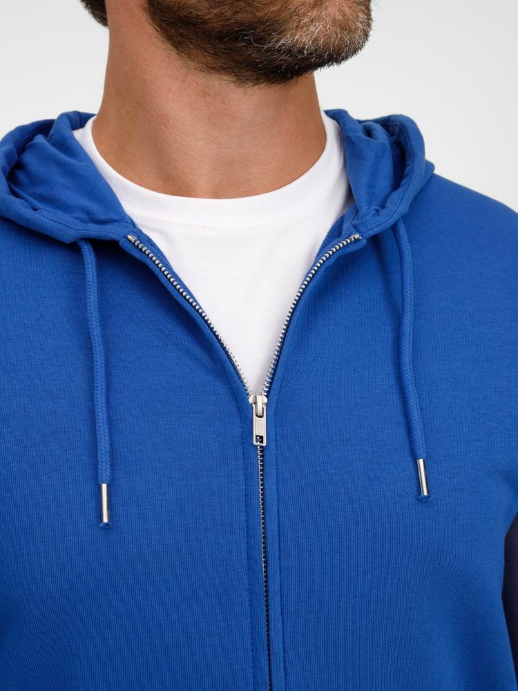 Базовая толстовка унисекс на молнии выполнена из органического хлопка и переработанного полиэстера.