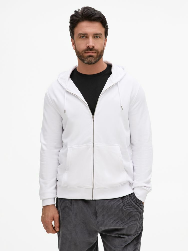 Базовая толстовка унисекс на молнии выполнена из органического хлопка и переработанного полиэстера.