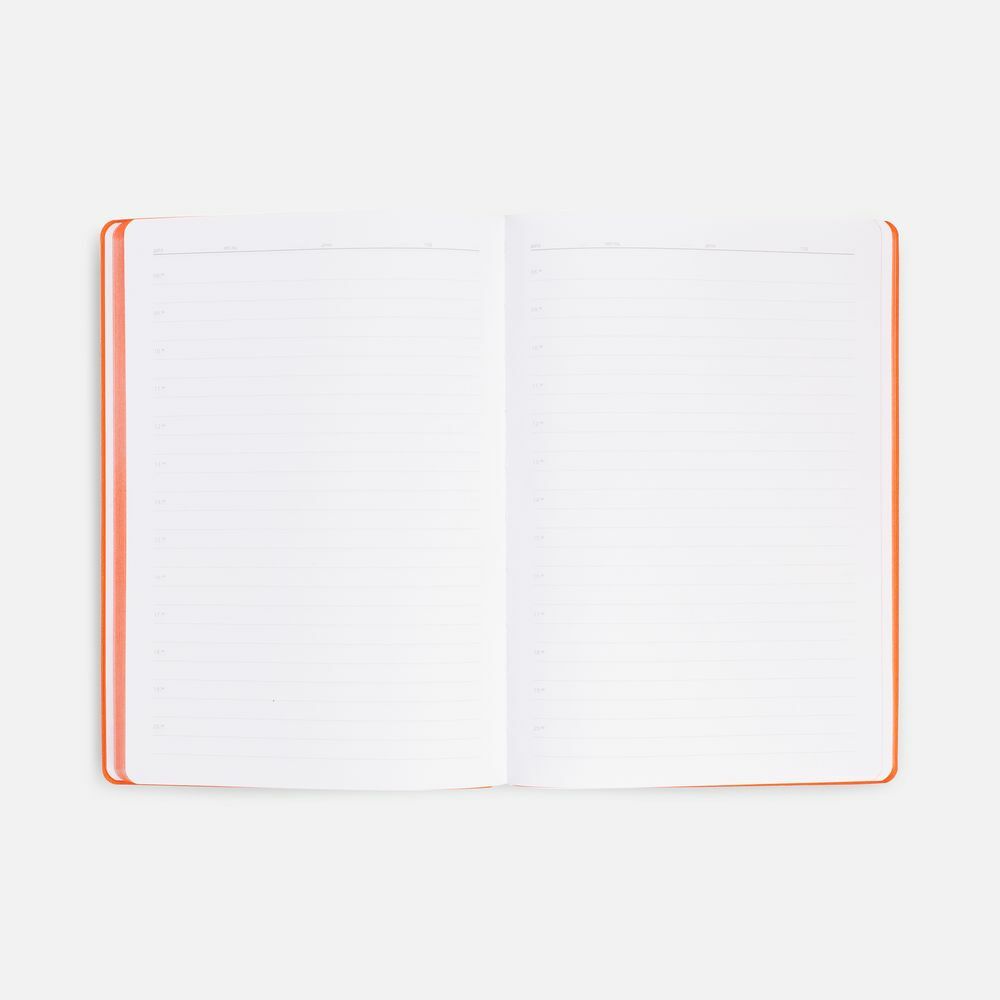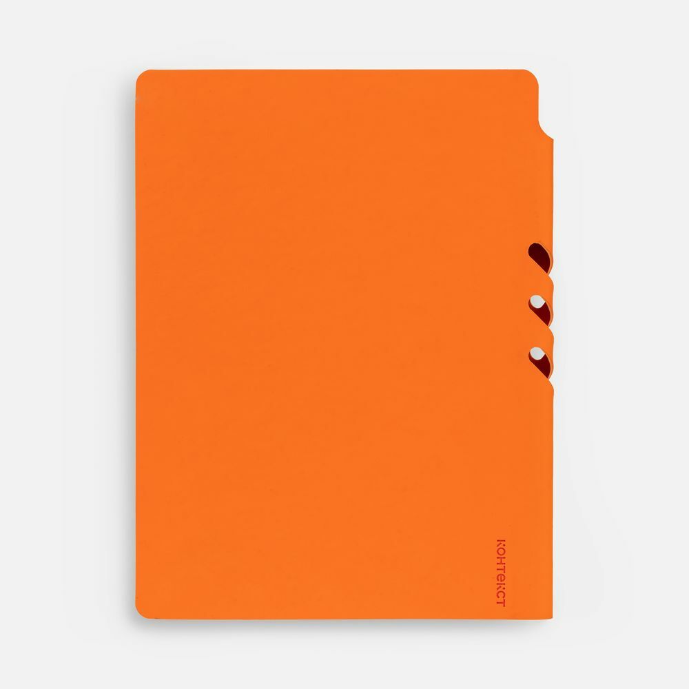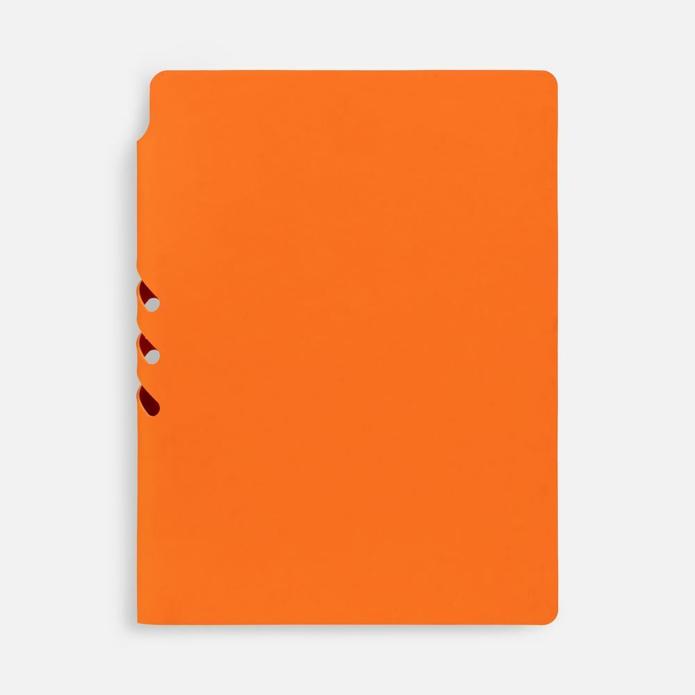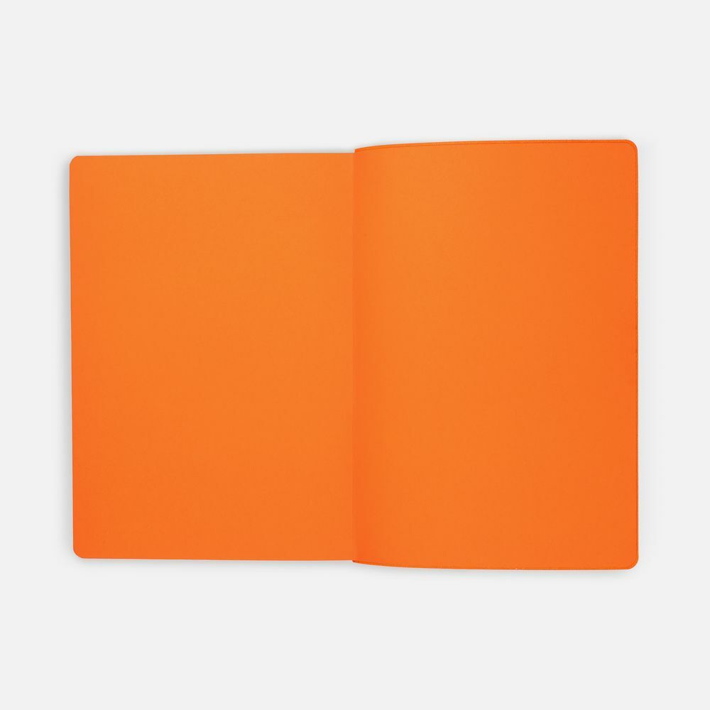 Гибкая обложка выполнена из материала Soft Touch, оранжевый OO и Latte, оранжевый OO (внутренняя часть обложки). Внутри корешка — специальное место для крепления ручки размером до 15х1 см.