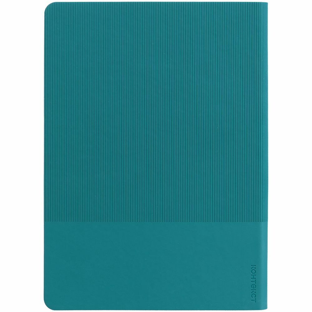 Ежедневник с гибкой обложкой выполнен из материала Soft Touch, цвет морской волны II и Latte, цвет морской волны (внутренний материал); дополнен ляссе бирюзового цвета и фактурным тиснением обложки.