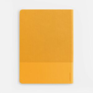 Ежедневник с гибкой обложкой выполнен из материала Soft Touch, желтый KK и Latte, желтый (внутренний материал); дополнен ляссе желтого цвета и фактурным тиснением обложки.