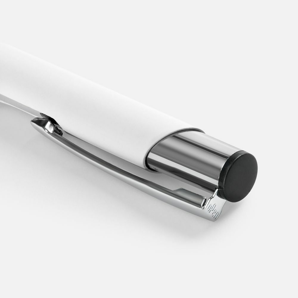 Яркая шариковая ручка с цветным покрытием софт-тач и хромированными деталями.