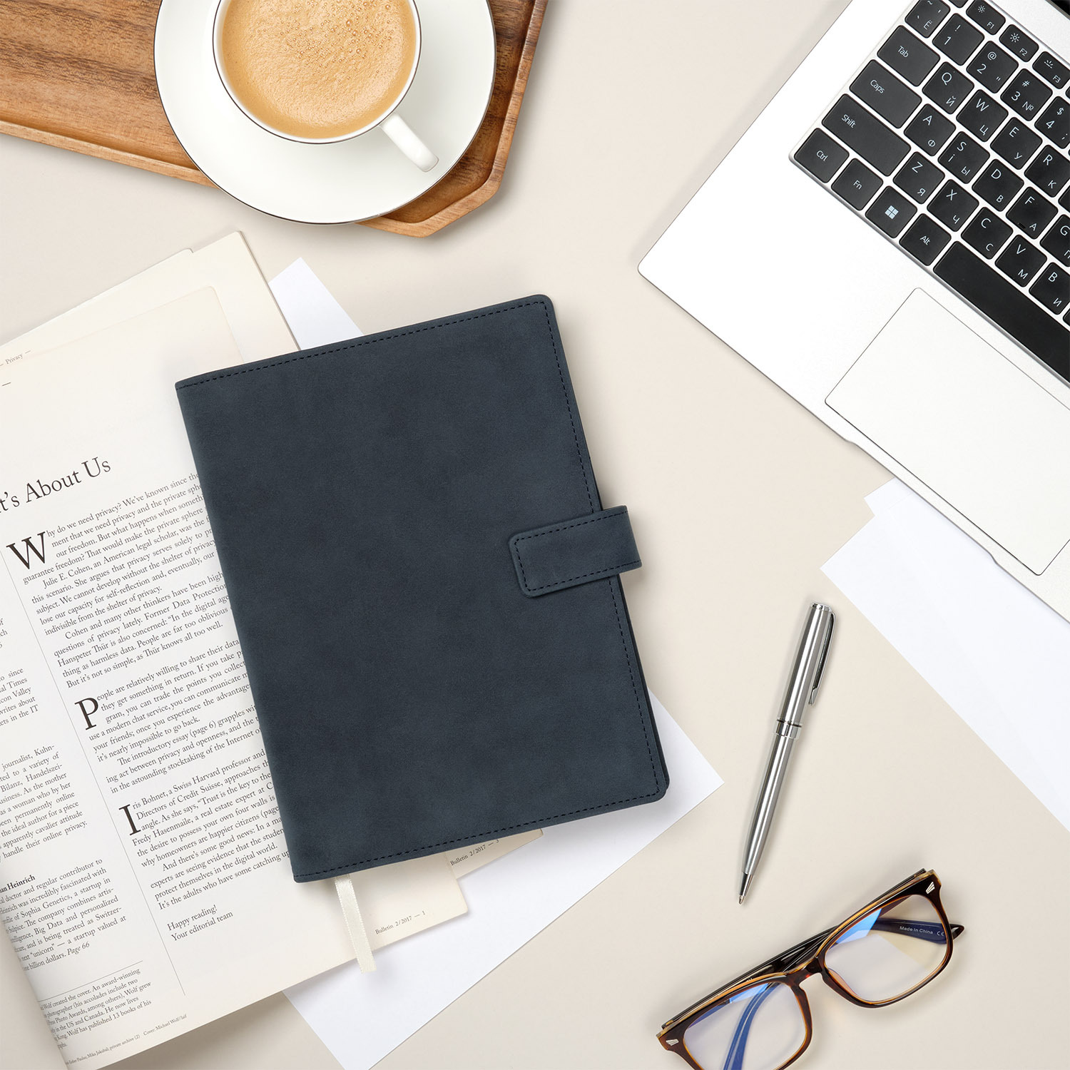 Royal NEO — это гармоничное сочетание элегантности и функциональности. Съемная обложка из высококачественной искусственной кожи Nuba с приятной замшевой текстурой и изысканной прошивкой по периметру в тон придает ежедневнику утонченный вид. Удобный хлястик на кнопке с практичной петелькой для ручки, выполненной из того же материала, что и обложка, обеспечивает надежную фиксацию и дополняет стильный дизайн.